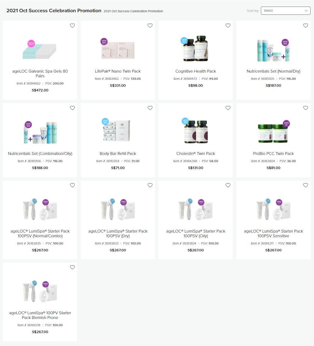 Chương trình khuyến mãi dành cho thị trường Nu Skin Singapore trong tháng 10/2021 là vài sản phẩm chăm sóc sức khỏe và các sản phẩm làm đẹp của ageLOC – sản phẩm độc quyền và nổi tiếng về công nghệ chống lão hóa và kéo dài thanh xuân của Nu Skin. Nhanh tay nhé các bạn, số lượng sản phẩm khuyến mãi có hạn.